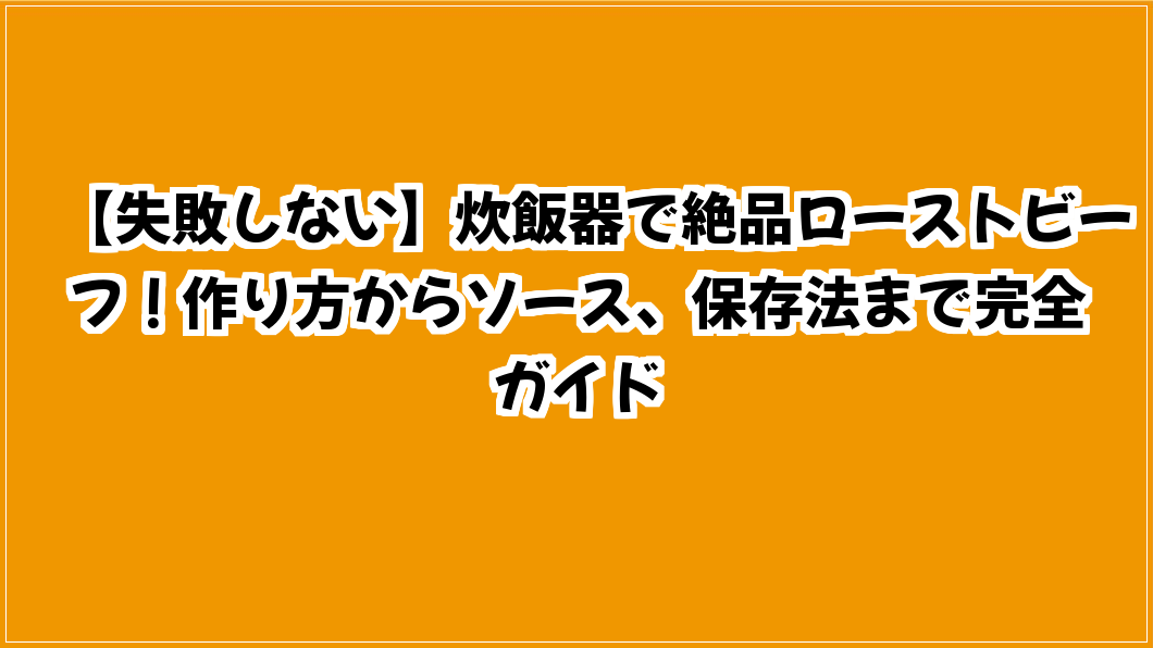 記事は「炊飯器で絶品ローストビーフを作るための完全ガイド」であり、以下の要素が詳細に説明されている。